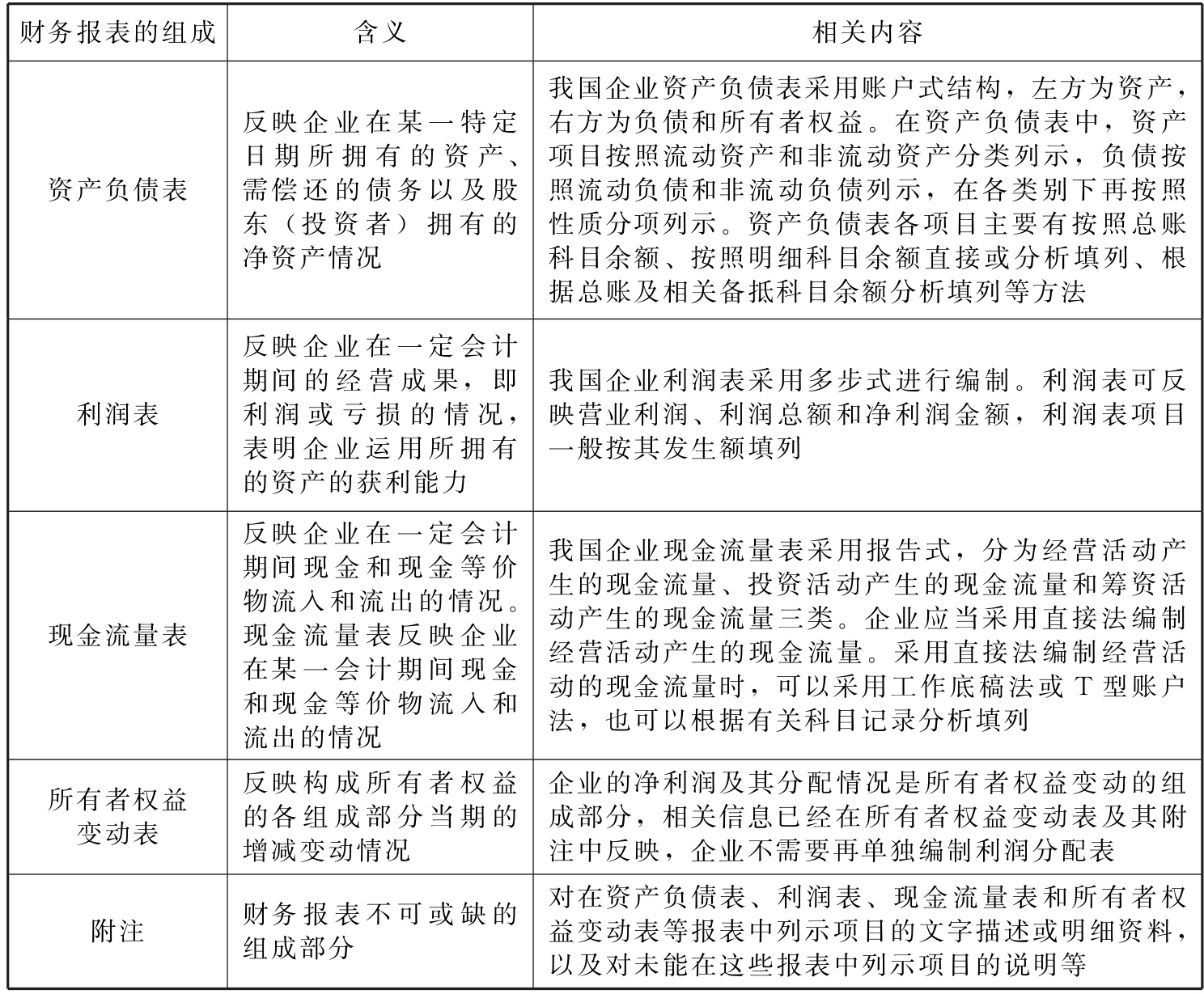 六、《企业会计准则》要求的财务报表的组成