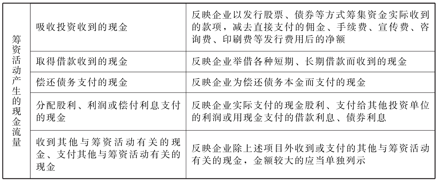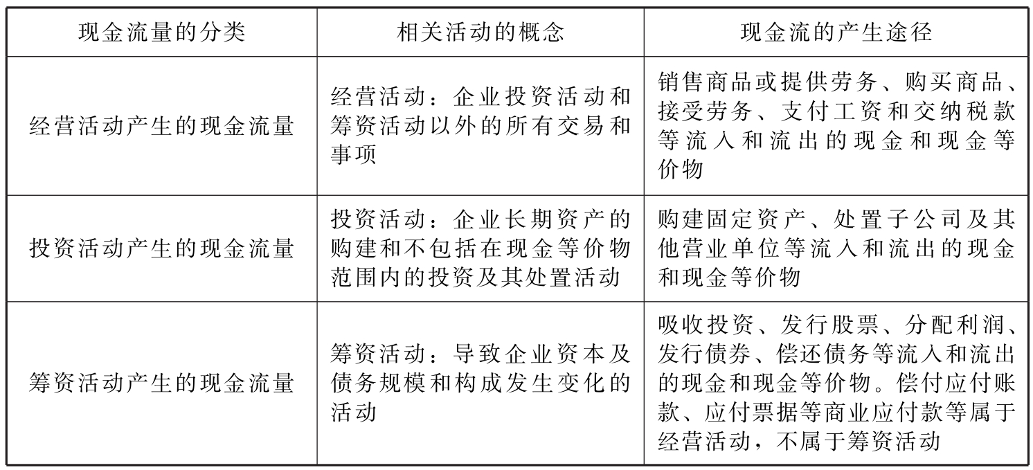 表15-15 现金流量的分类及产生