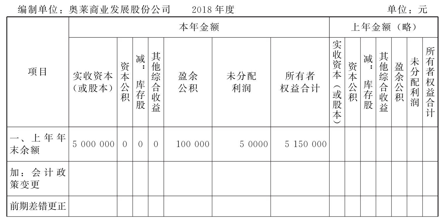 根据上述资料,奥莱商业发展股份公司编制2018年度的所有者权益变动表,如表15-22所示。