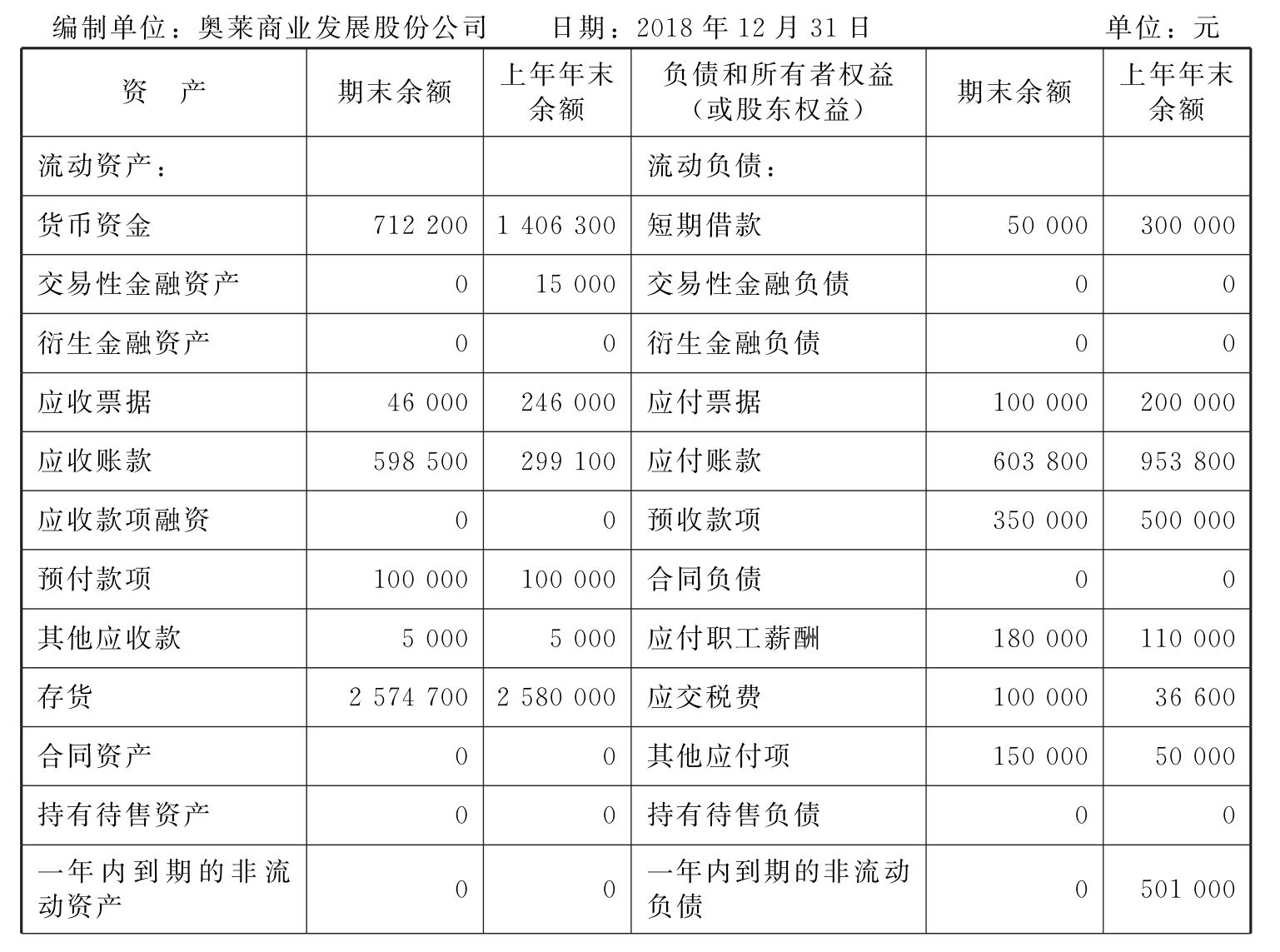 【例15-1】奥莱商业发展股份公司2017年12月31日的资产负债表(年初余额略)及2018年12月31日的科目余额表分别见表15-8和表15-9。假设该公司2018年度除计提固定资产减值准备导致固定资产账面价值与其计税基础存在可抵扣暂时性差异外,其他资产和负债项目的账面价值均等于其计税基础。