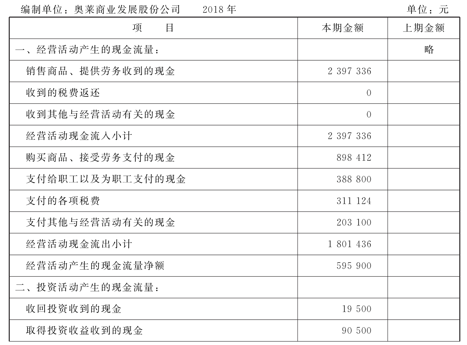 1.奥莱商业发展股份公司2018年度现金流量表各项目金额,分析确定如下:
