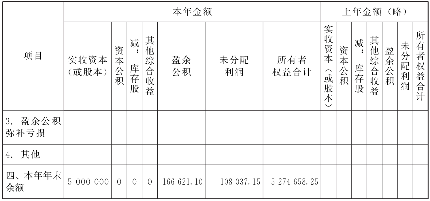“上年年末余额”项目,反映企业上年资产负债表中实收资本(或股本)、资本公积、库存股、盈余公积、未分配利润的年末余额。