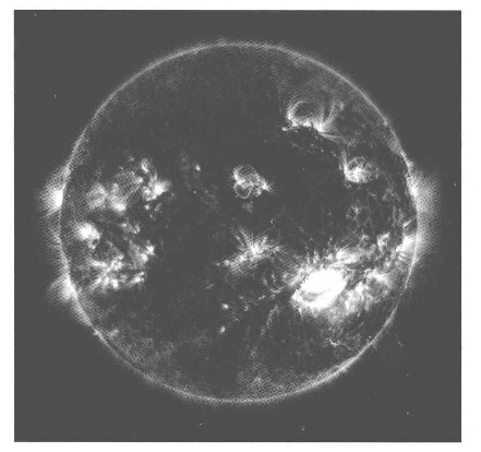 色球上有耀斑。耀斑是色球上一些相对更亮的区域,地球上美丽的极光就是它产生的。在色球之上是日冕。当我们看日全食时,会看到黑暗的太阳最外面有白色的一圈,其亮度与颜色都大致像个满月,这就是日冕了。日冕是太阳大气的最外层,在几层之中它也是最厚的,其外冕可以延伸到木星的轨道之外,这也就是说,我们整个的地球实际上都被拥在日冕之内。