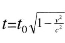 这也可以用公式来表达。我们现在设静止时闹钟上的时间为t0,现在它以速度为v运动,它上面的时间t将产生的变化即如下公式:。