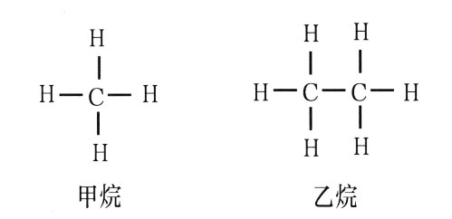 按照上面的价键学说,就能够用形象的图表来表示它们的分子结构了,例如,甲烷与乙烷的结构式是这样的(如下图所示):