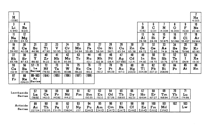 明显地,门捷列夫是根据元素原子量的大小从小到大、从上往下排列的,例如氢(H)是1,锂(Li)是7,铍(Be)是9.4,硼(B)是11,等等。