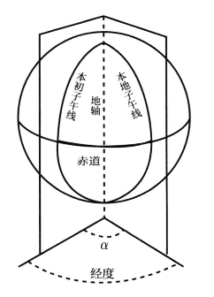 经线又被称为子午线,更精确地说,子午线乃是经过地球地轴的一个平面与地球表面的交线,由于地球总的来说是一个球体,因此这交线乃是一个大圆。这个大圆以南北两个极点为界分成两条经线。如下图A:
