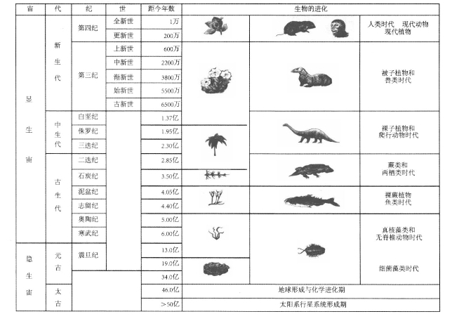 最后,为了让我们清晰地看看地球的演化史,请参见下面的地质年代简表: