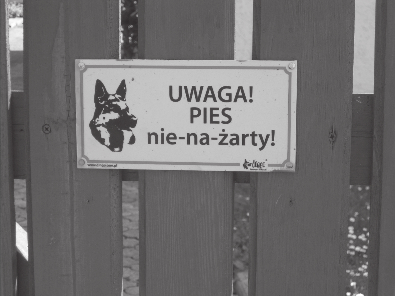 波兰人倾向于实话实说。这个告示牌警告说:“当心狗,绝对不开玩笑!”