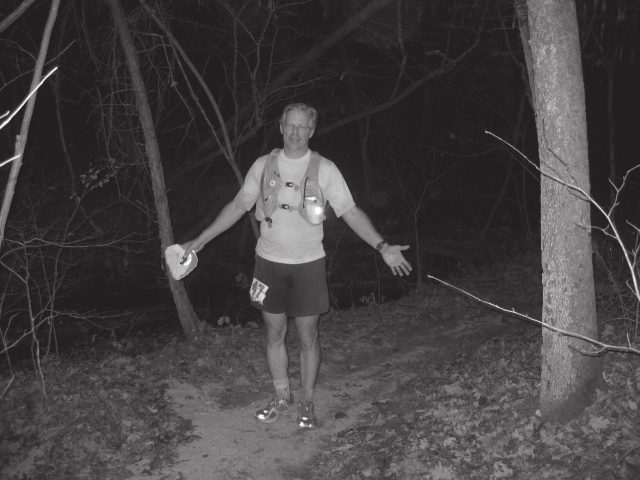 我看了看表,已经是午夜11点45分。我开车回到姐姐的公寓,把车停在街边,然后飞奔着消失在夜色中。我又一次从浣熊身边飞驰而过,经过时我对它说:“没时间了,我得跑步了。”临近午夜还有几分钟的时候我完成了跑步,让我保持了两个月的跑步没有间断。