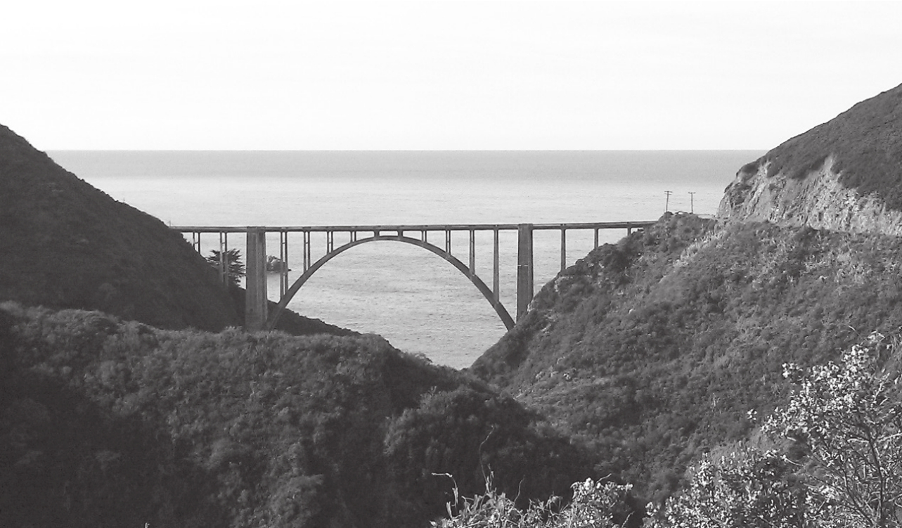 在小苏尔河(Little Sur River)经过一段大的转弯后,你将爬上哈利肯观景点。从山顶上往下看,是大约2万英里的海岸线,这是一片梦幻般的景象,蓝色的海水,汹涌的海浪,露出水面的岩石,翻腾的白色浪花,柏树,还有大片肥沃的绿色土地向着水面延伸而下。接下来是比克斯比大桥(Bixby Bridge),这是大萧条时期的一个工程奇迹,它戏剧性地横跨一个巨大峡谷的入口,是世界上拍成照片最多的建筑之一。