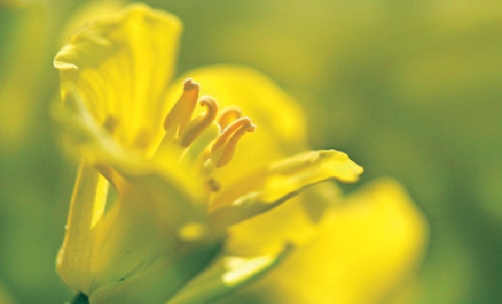 图3-11 油菜花近观(示花萼、花冠、雄蕊、雌蕊)