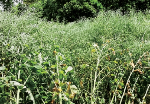 图3-11 是油菜花的近观图,它同为4 个花萼、花冠,中央是4 长2 短的雄蕊,围绕着细长形的子房。然后,我们再来看看它的果实(图3-12)。