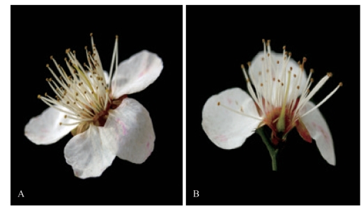 在这个共性之下,蔷薇科植物的雌蕊却各有特点,一般外观可见花柱、柱头,子房往往深藏不露而又各有奥秘。图4-18 中的梅花所代表的只是其中的一种雌蕊情况——蔷薇科李亚科的壶状萼筒,内藏子房,子房上位。