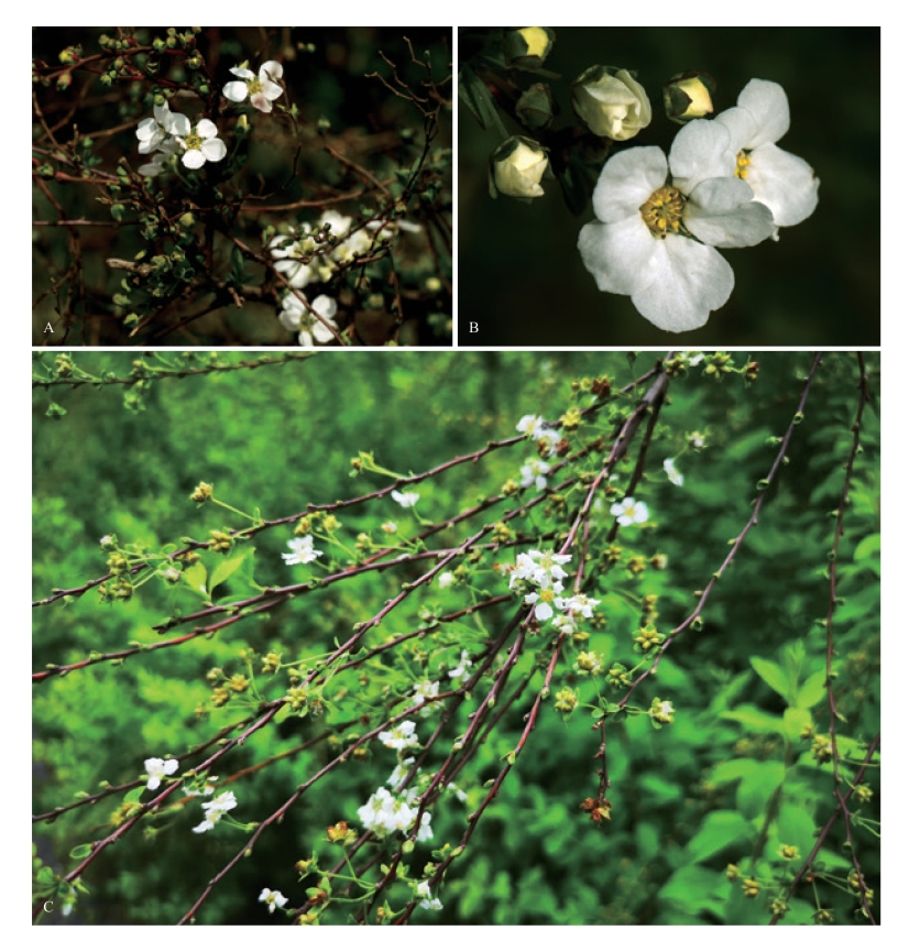 除了蔷薇科的共性外,绣线菊亚科的萼筒和雌蕊的特点可以归纳为:花托凹陷浅杯状,心皮五离生杯底,子房上位花周位。