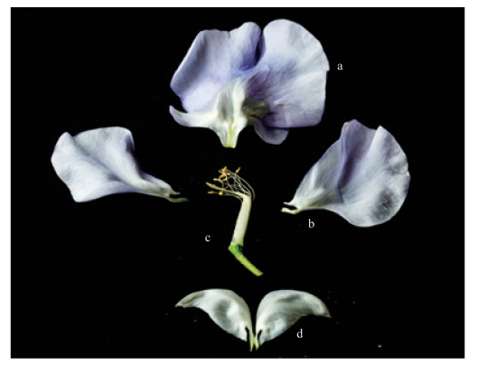 a. 旗瓣;b. 翼瓣;c. 雌雄蕊;d. 龙骨瓣