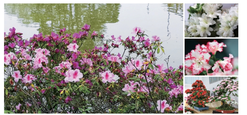 这里所指的“品种”并非分类学上“品种”的概念,它只是一个泛指,既是指杜鹃花或映山红(Rhododendron simsii)缤纷多姿的众多栽培品种,也是指杜鹃花属(Rhododendron)中的多个种类。图8-1 是一组摄于滨江森林公园的精品杜鹃。