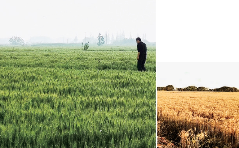 图11-5 5 月初开花(左)、6 月底成熟(右)的小麦