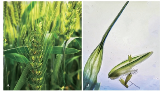 A. 麦穗近观;B. 小麦一朵小花(外稃具芒)