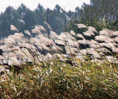 民间还有“芦荻”之说,一说其即指荻;另一说其是芦苇和荻的合称,秋风起处,白色、轻柔的芦花、荻花一时瑜亮。芦苇的穗状花序分枝多,总花序外观蓬松、圆锥状;荻的穗状花序几无分枝,成束排在秆顶,总花序外观呈旗形。