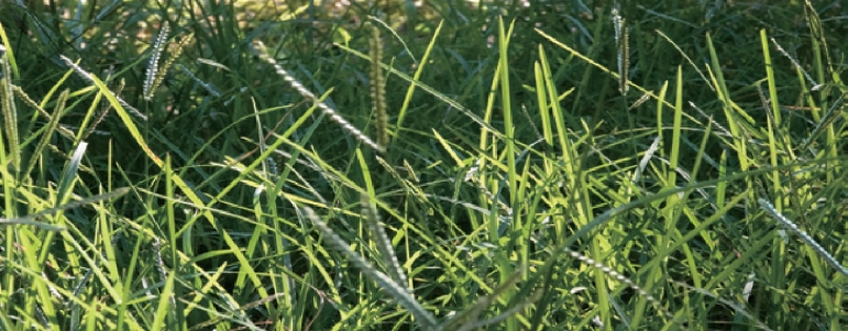 禾草何其多,何以独选它?财积食性杂而偏荤,并非单好这口。牛筋草的茎强韧,能耐财积强健的咀嚼式口器的撕咬是其主因。它的果期又恰逢财积活跃的时候,茎顶4、5 条指状排列的果序又易于辨识,牛筋草也就从众多禾草中被选中而冠以财积草之名了。