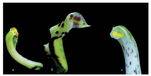 a. 合蕊柱侧面观;b. 唇瓣;c. 合蕊柱正面观