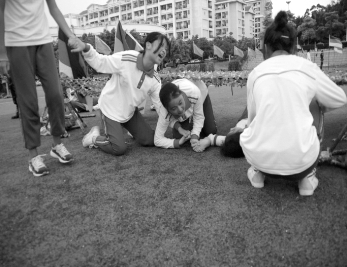飞龙总教官把全年段同学按竞赛小组排列,准备进行“生死营救”项目挑战。