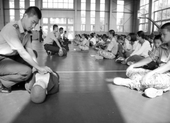 郑主任把整个流程动作教会我们后,每个代表带一个假人到班级,保证每个同学都能够正确掌握施救方法,班主任也在班级辅助教学,郑主任在台下走动教学。当大家基本学会时,郑主任总结了今天的授课情况,并说道:“风险是可以预防的,首先要保持良好的饮食习惯,避免营养过剩或营养不良;冬天外出要注意保暖,以免着凉而发生心脑血管意外;避免过度劳累,保持情绪稳定和心理平衡,减少冠心病急性发作的诱因。”