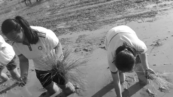 艳阳下学生们兴致勃勃地围在稻田边,认真地听着老师讲解拔苗插秧的方法、步骤以及注意事项等。老伯带领我们挽起衣袖裤脚,在田里亲身体验插秧乐趣。拔苗、播种、插秧……这些平时在田间见到的耕作情景,被“搬”到了我们的班级里,而种水稻的“主角”是满脸青春的我们。苏小龙非常喜欢在菜地里上课,既能体验田间劳动的辛苦,又能收获自己的劳动成果。