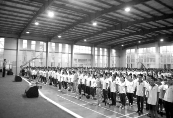 晚会结束后,学生干部留在体育馆等待“院长”继续进行“班干部管理内训”课程。