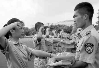 会操“舍虚求实”,没有安排学生摆造型倒计时,真正地把时间用在了训练上。训练采用了院长独立研发的“3+2”模式,即教官三天塑形,学生教官两天巩固,为学校培养一支能战斗的学生教官队伍。会操第一项内容就是学生教官向班主任宣誓,我紧握拳头跟着总教官喊着誓词:“我决心成为一名合格的学生教官,忠于班级,忠于班主任,在班级任何需要我的时候,我将挺身而出、全力以赴、为班级的荣誉奋斗到底……”