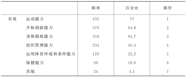 对于学生能够自行判断体育课堂的环境是否适宜学习,合理选择有效的体育学习工具为我所用的能力培养不足。