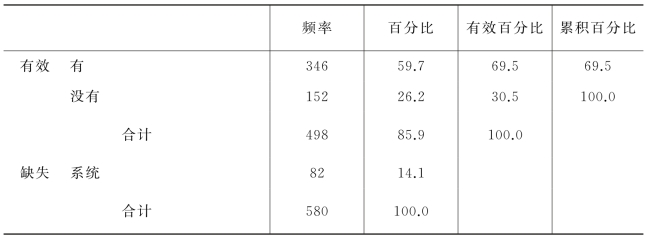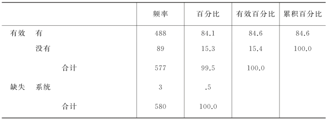 由上表所知,有84.6%的学生反映有专门体育课外活动指导教师所占比例较高,仅有15.4%的学生反映没有专门的课外活动指导教师。说明各校非常重视学生的体育教育,并将体育课外活动看成是体育教育的重要一环,在课外活动中做好了规范,学生能在体育课外活动中得到专门的指导教师指导,也从一定程度上防止了学生课外活动中运动损伤和意外的发生。
