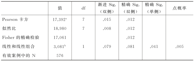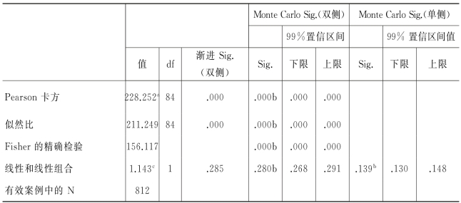 a.76单元格(73.1%)的期望计数少于5。最小期望计数为.04。