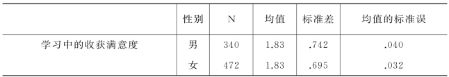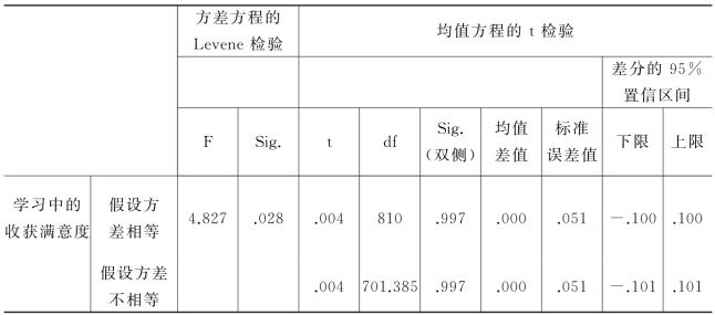 对男女大学生体育获得感的对比检验可知,P=0.012,P≤0.05,存在的显著的差异。