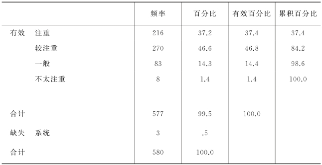 由上表可知,绝大多数学生认为教师在实际课堂教学过程中注重及较注重学生差别化教学,占比84.2%;仅有8名学生,1.4%的学生认为教师在教学过程中不太注重差别化教学。说明在河北省的各高校中绝大多数体育教师比较注重体育课堂教学中学生的差别化教学和个性化教学,体现了教学过程中依据学生的实际情况决定教学内容的特点。