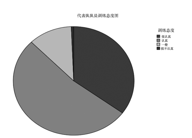 由上图可知代表队队员绝大多数同学都能够很认真地对照训练,个人的训练目的型腔,自身的态度端正。