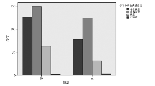 由图4-1-4页可以看出分性别学生体育学习满意度不存在明显的差异性,印证了卡方检验结果。