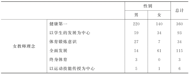 表4-3-3 教师理念与学生体育意识*性别交叉制表