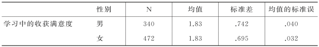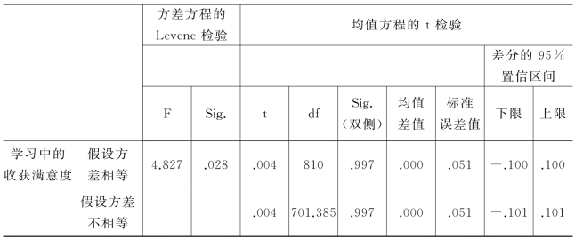由上表可以看出被调查男大学生和女大学生之间体育教育的满意度无明显差异P=0.997,≥0.05。