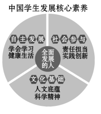中国学生发展核心素养,以科学性、时代性和民族性为基本原则,以培养“全面发展的人”为核心,分为文化基础、自主发展、社会参与三个方面。