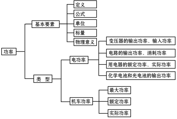 思考问题3:要求学生作出以功率为主知识点知识结构框图,并相互讨论完善。