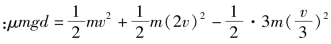 全过程系统动能的损失都将转化为系统的内能,而摩擦生热Q=fd=μmgd,由能量守恒定律列式,解得
