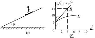 [例1] 质量为40kg的雪撬在倾角θ=37°的斜面上向下滑动,如图6.18甲所示,所受的空气阻力与速度成正比。今测得雪撬运动的v-t图象如图6.18乙所示,且AB是曲线的切线,B点坐标为(4,15),CD是曲线的渐近线。试求空气的阻力系数k和雪撬与斜坡间的动摩擦因数μ(g=10m/s2)。