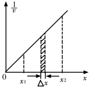 Δx/Δv=Δt,这正是蚂蚁通过位移Δx所需的时间。故图线与横轴所围面积的大小表示蚂蚁通过一定的位移所需的时间。由图可知,蚂蚁由A爬至B所需的时间即为图中从x1到x2的梯形面积数值。