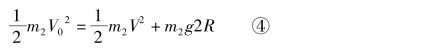 分析:设B球在最高点时速度为V,本题中问题所要达到的结果是“A球运动到最低点时,B球恰好运动到最高点,此时两球作用于圆管的合力零”。为达到此结果,并不要求所有的已知条件m1、m2、R与V0为何值,只是这四个物理量之间满足一定的关系,靠这个关系式的制约就可达到本题的结果。