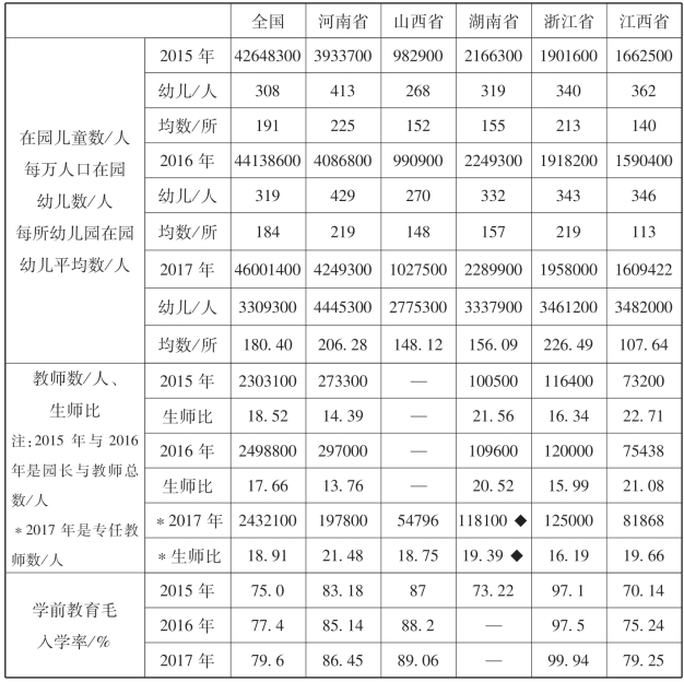 注:◆2017年湖南省幼儿园教师数包含园长与专任教师数。