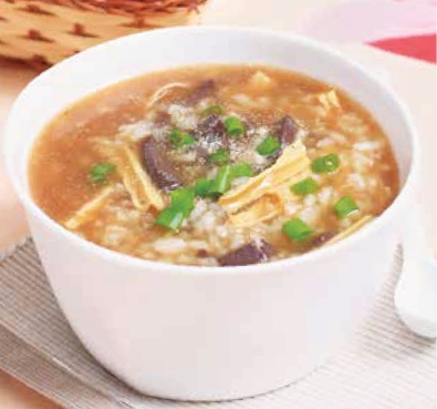 材料 大米100 克,猪血50 克,水发腐竹35 克。