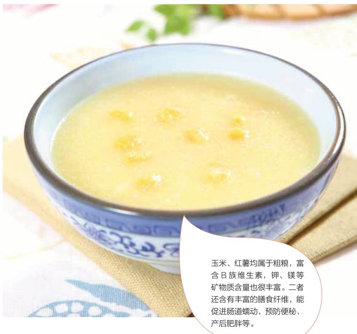 2 玉米面中加少量清水,搅匀后倒入煮熟的红薯汤中,待汤浓稠煮沸即可。