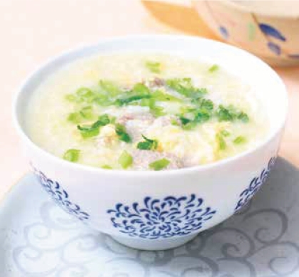 材料 牛里脊肉50克,大米60克,鸡蛋1个。